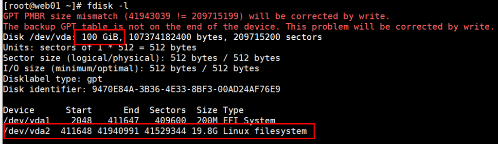 云服务器,原始硬盘分配了20G 空间,空间全部分给了根分区(”/”)。因业务使用发现磁盘很快就要占满了,所以就有扩容的需求。